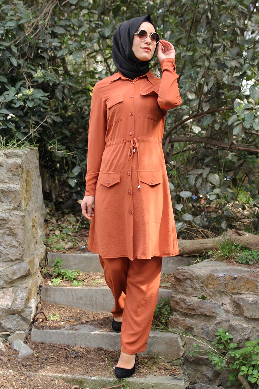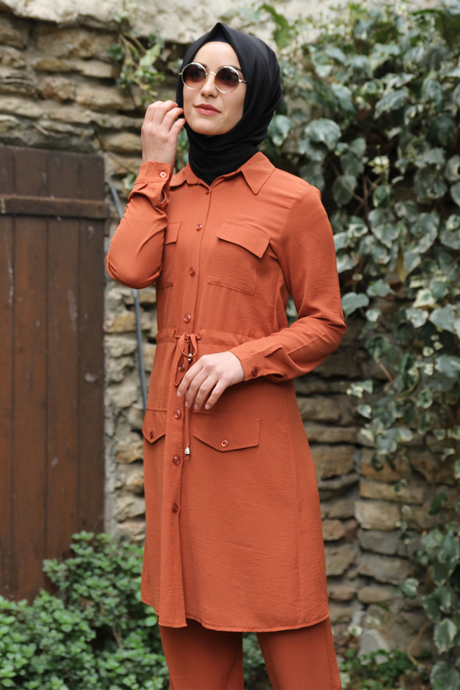 Coral matching Tunic and Trouser Set. Tunic features faux-pokets and waist drawstring. Fabric: Crepe - Perfect for wrinkle-free garments. Light weight of the fabric keeps the condition better for longer use. Tunic Length: 110 cm. Tunic and Trouser Set in Image is Size 38 (UK Size 8-10 equivalent)